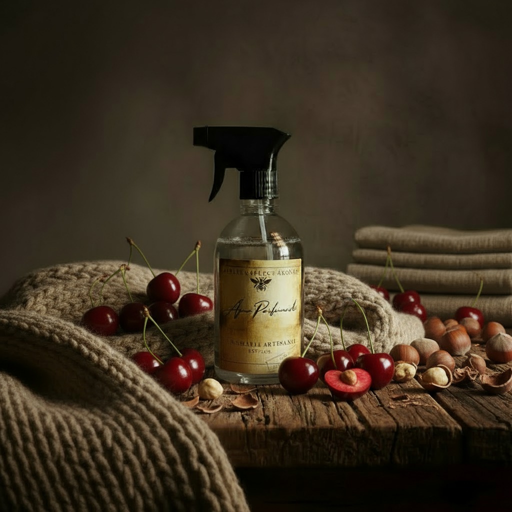 Água Perfumada para Tecidos Cereja e Avelã 500ml – Doçura Aconchegante para Roupas e Ambientes