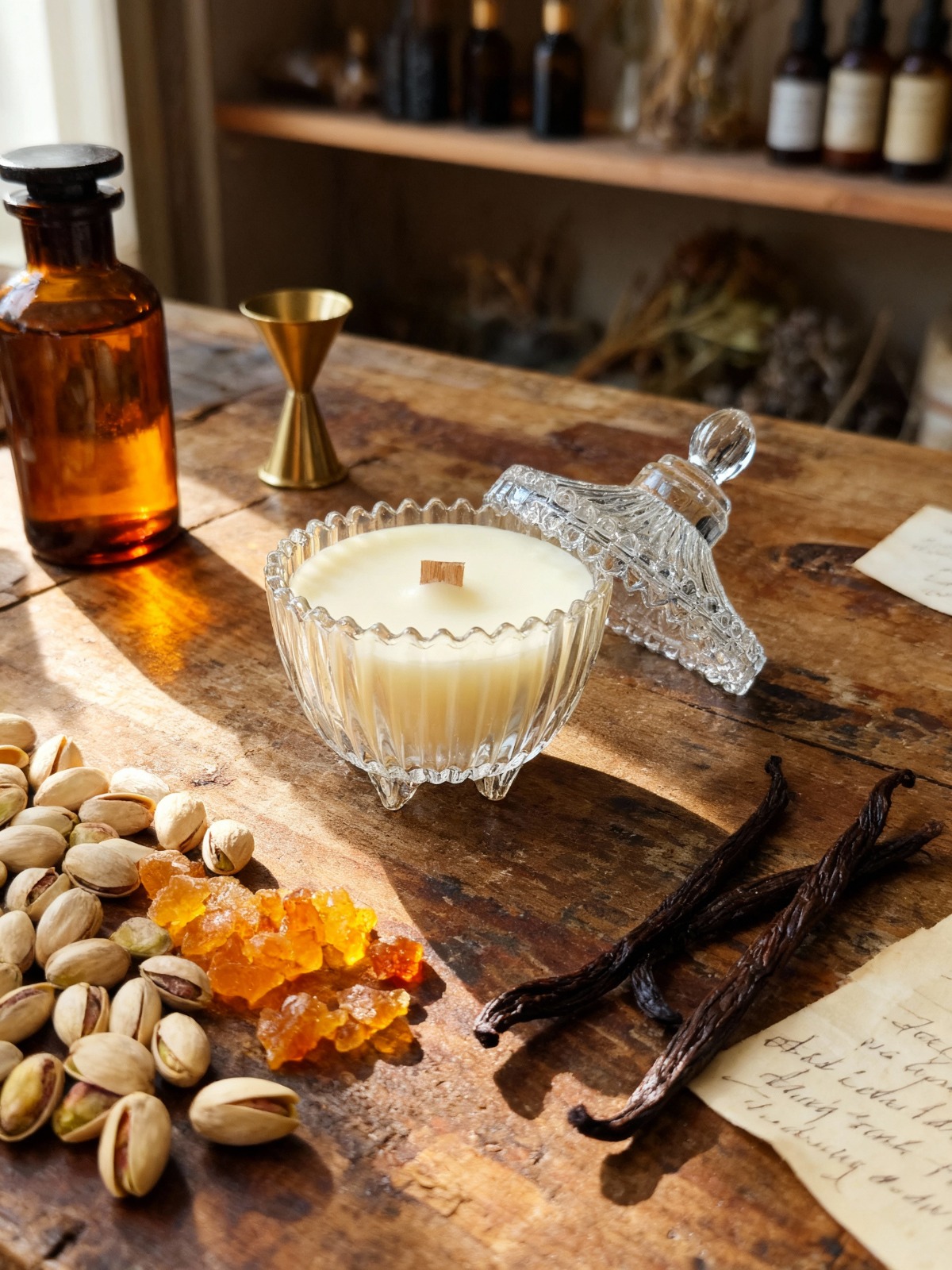 Vela de Pistache Luxo – Aroma Gourmand Sofisticado para um Ambiente Aconchegante